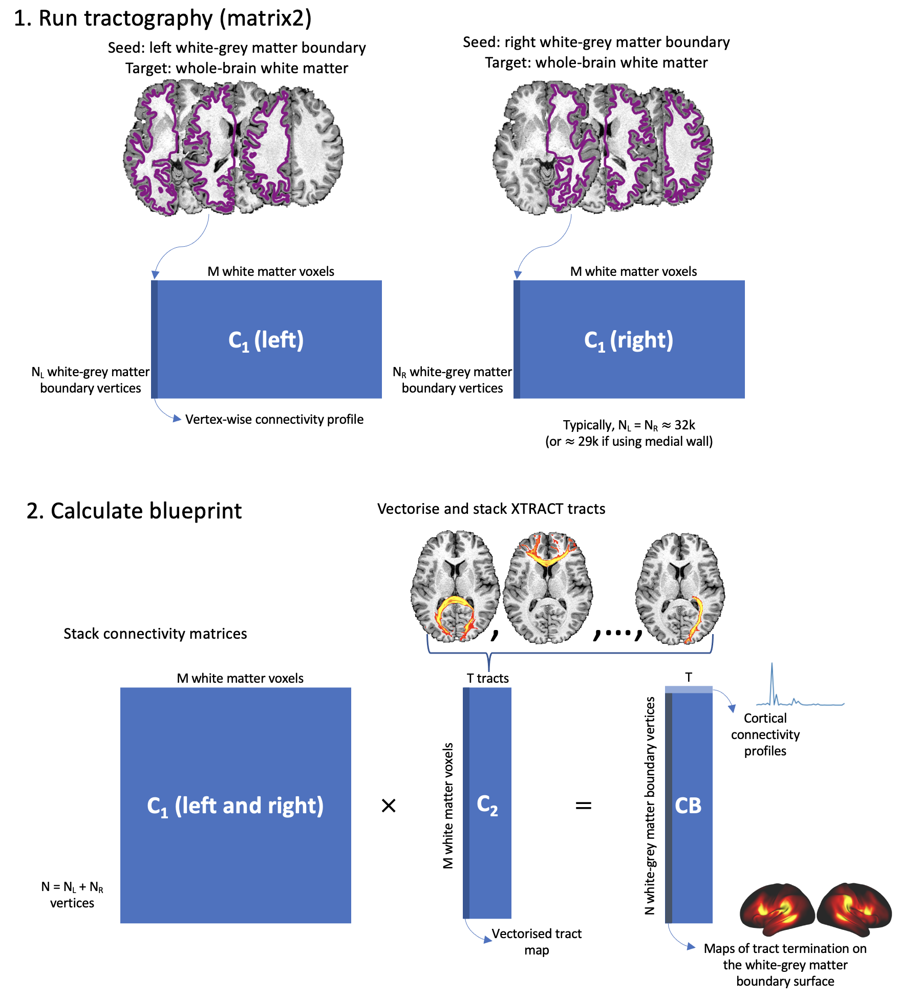 After building your connectivity blueprints with xtract_blueprint, you can use xtract_divergence to compare connectivity blueprints across individuals, groups, and species, or use xtract_divergence to translate scalar cortical maps based on the similarity between connectivity blueprints