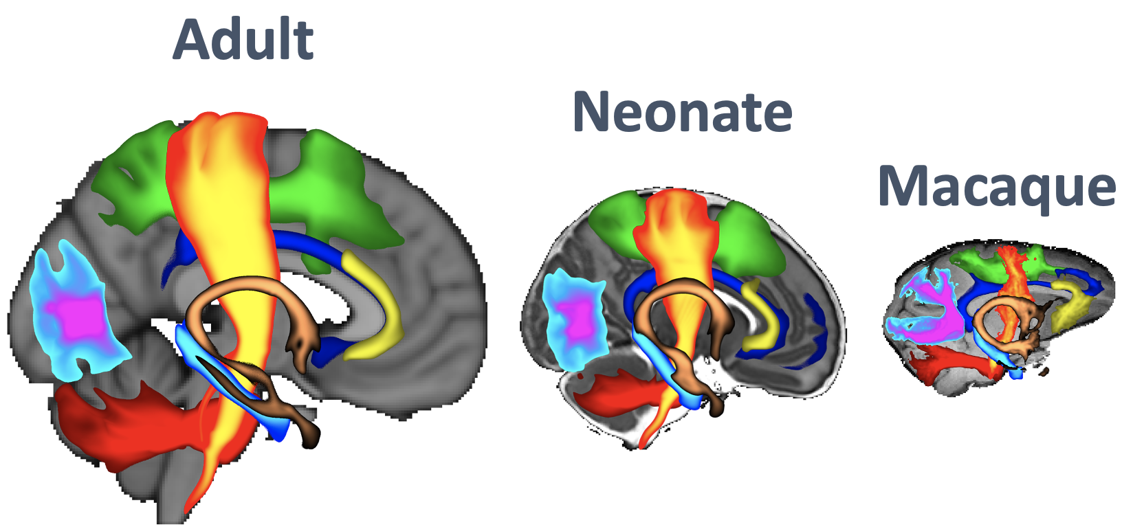 Warrington S.*, Thompson E.*, Bastiani M., Dubois J., Baxter L., Slater R., Jbabdi S., Mars R.B., Sotiropoulos S.N. (2022) Concurrent mapping of brain ontogeny and phylogeny within a common space: Standardzed tractography and applications. Science Advances, 8(42). DOI: 10.1126/sciadv.abq2022