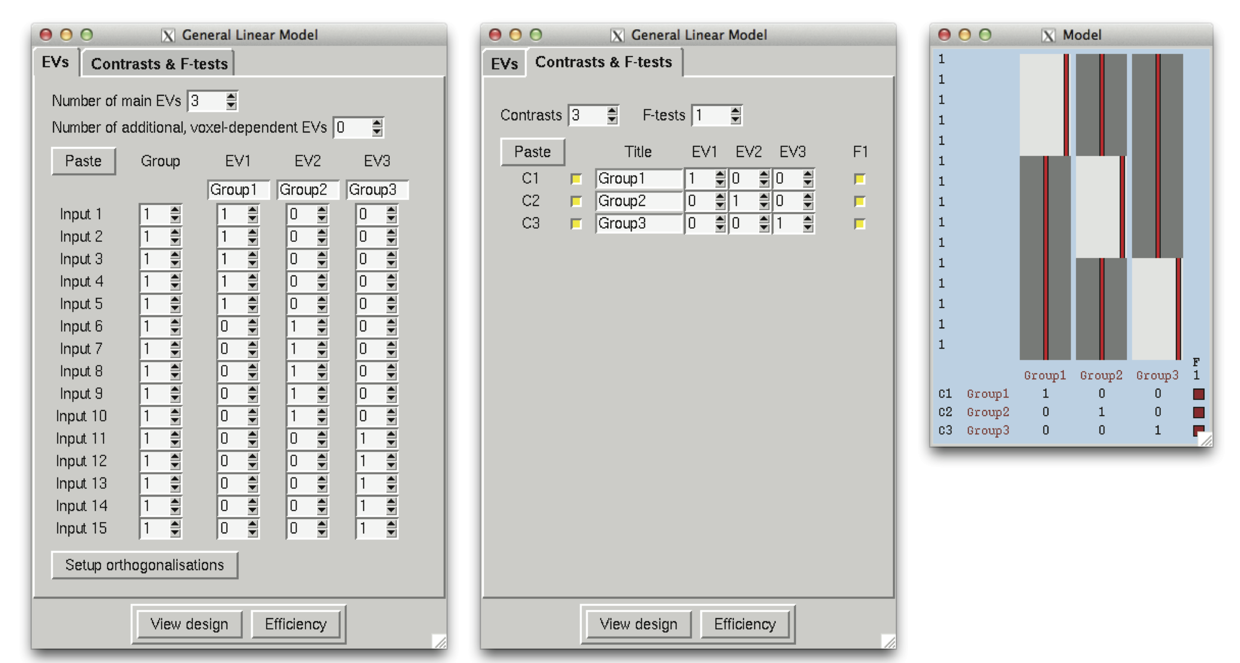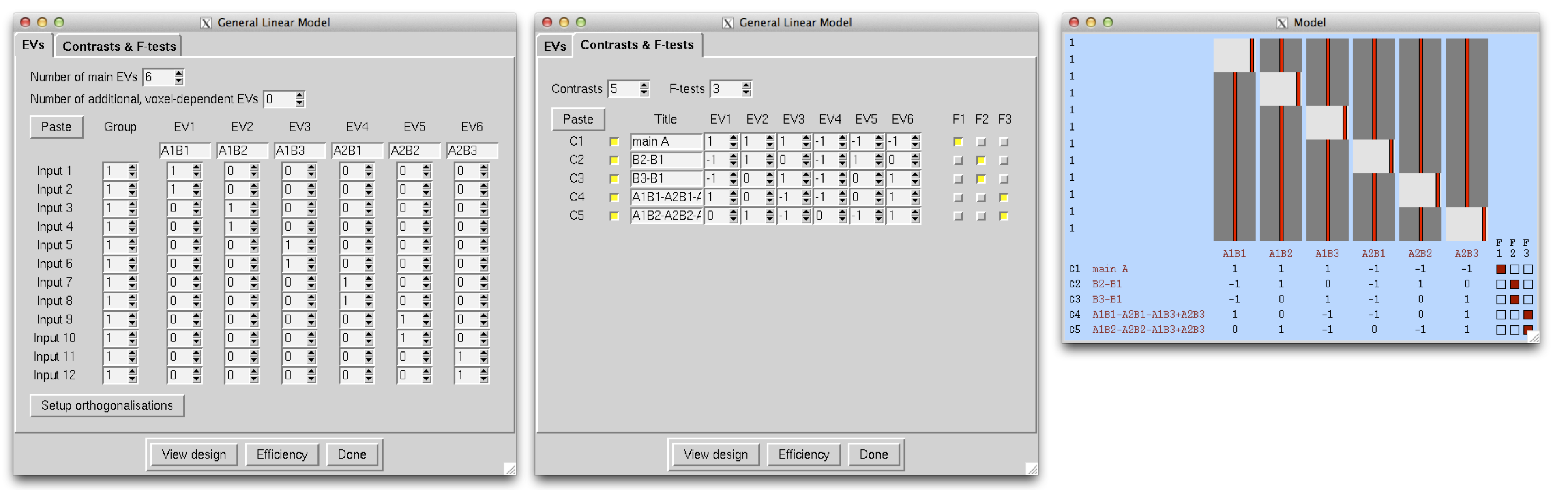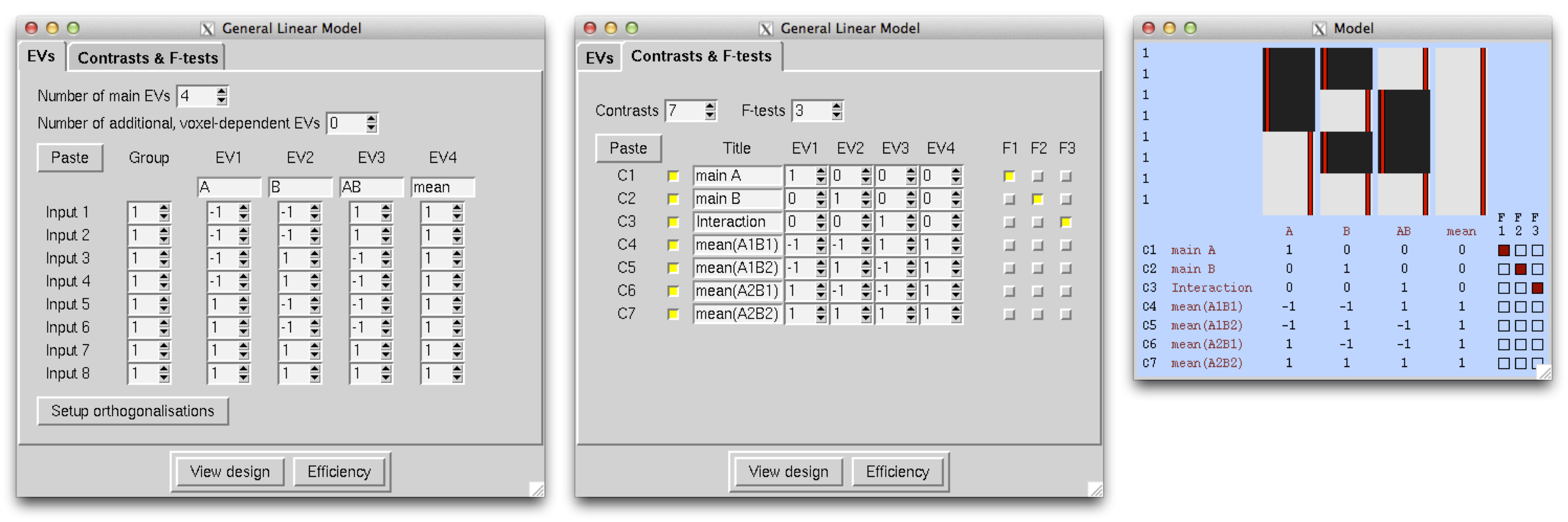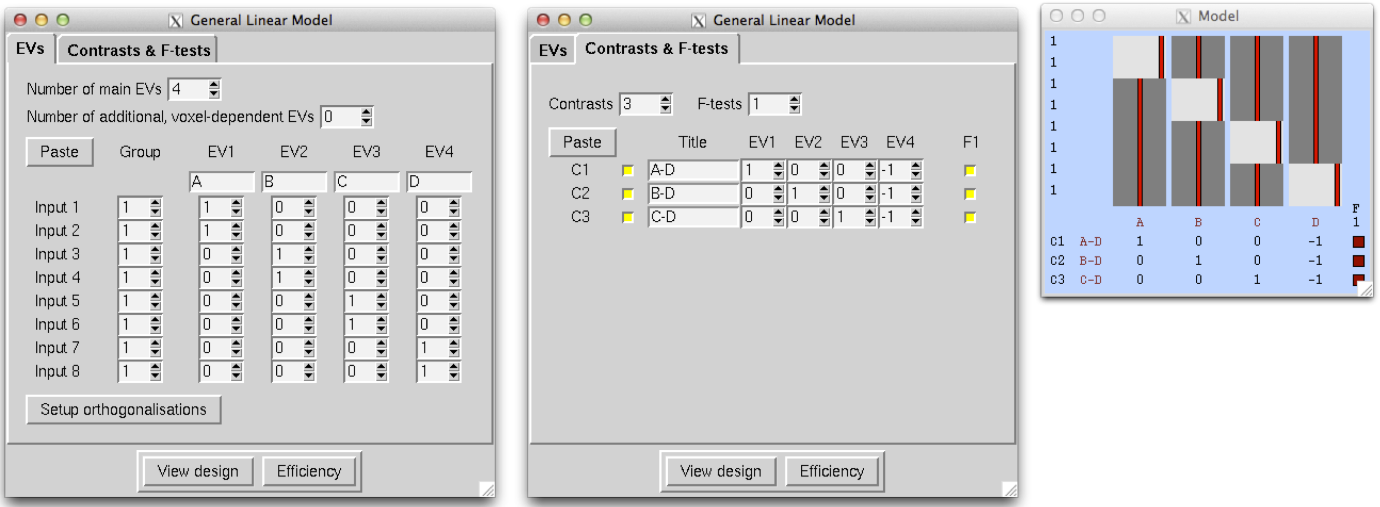 - Enter the data for your design matrix, contrasts, or F-tests, using your data-editing tool of choice (e.g. Microsoft Excel, Google docs, Emacs+org-mode, Notepad).