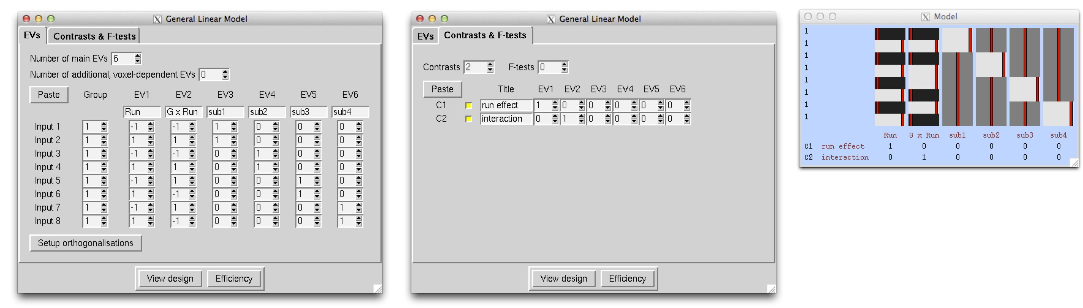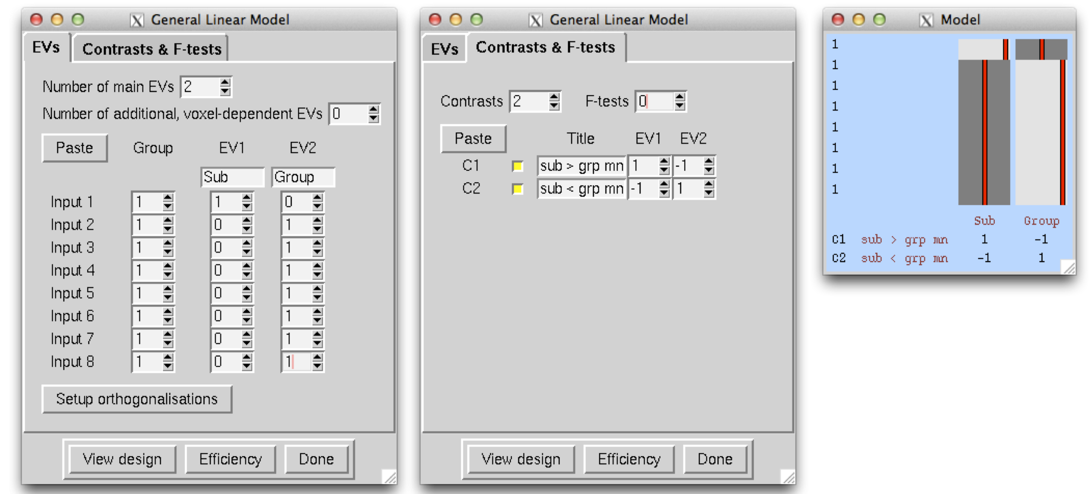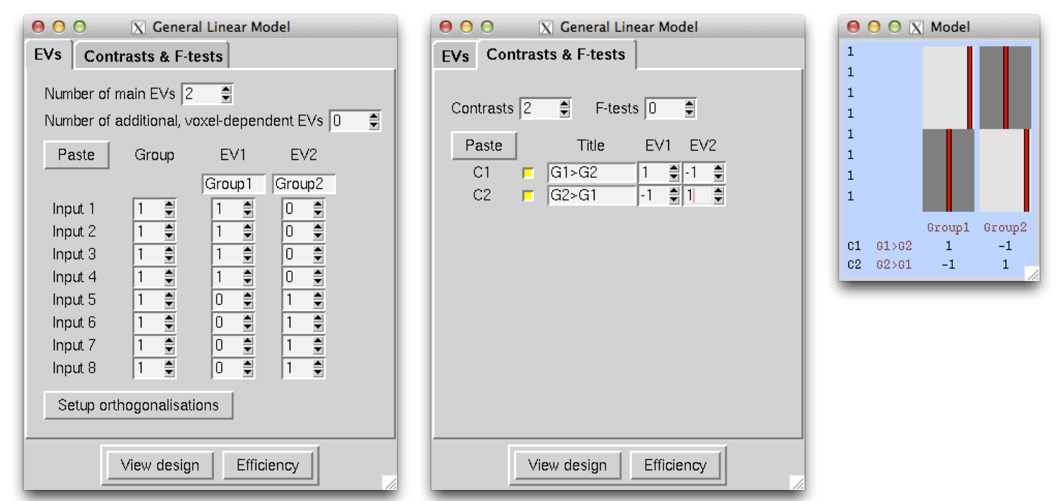 When the number of subjects in your study starts to grow, the FSL GLM GUI interface becomes quite slow and cumbersome to use. In these situations, you will find it much easier to create your design matrix, contrast and F-test files manually. This is quite simple, and involves just a few steps: